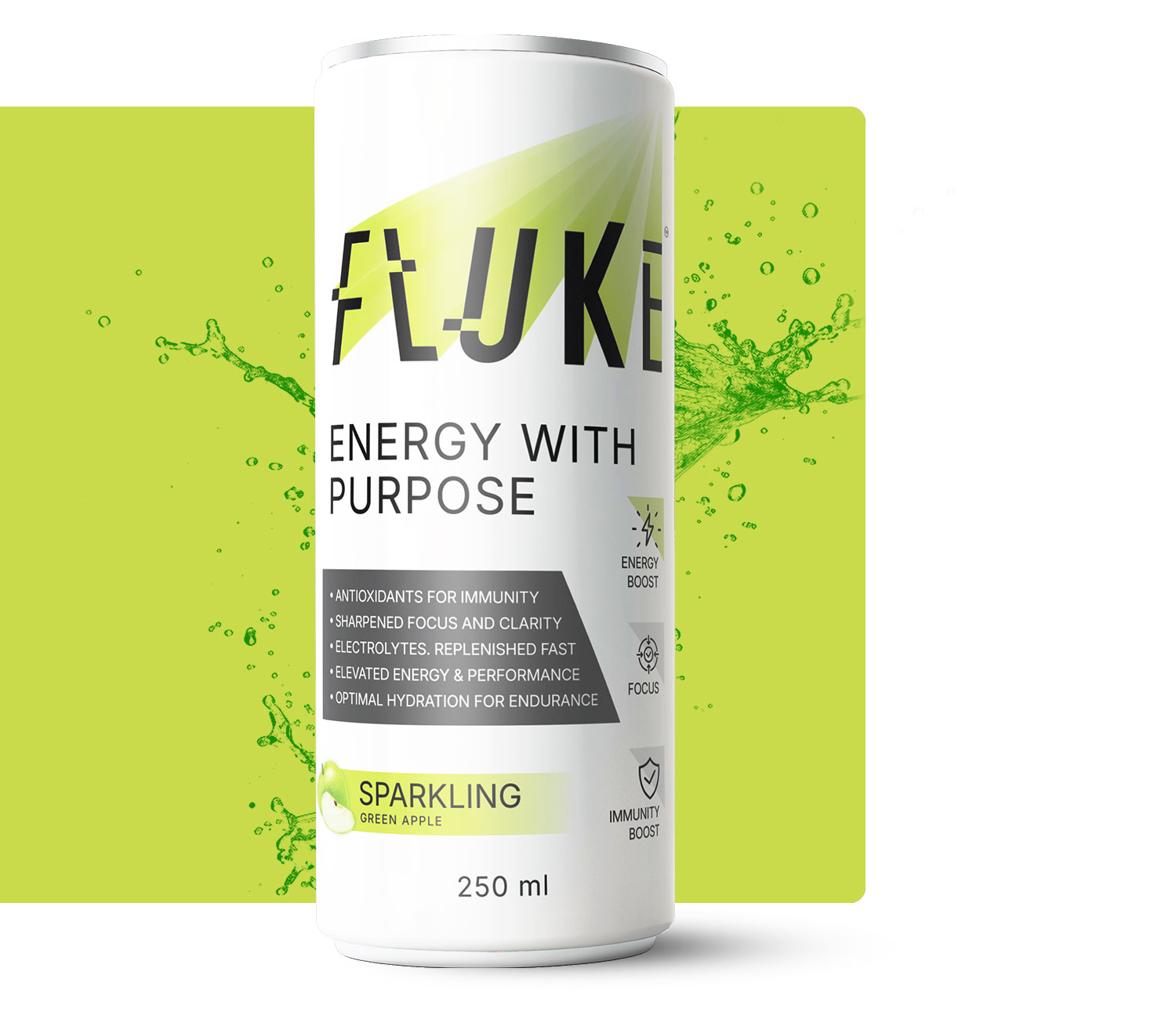 Sure, apples keep the doctor away. But this one keeps fatigue away. Fluke Sparkling Green Apple is your go-to crisp, sparkling energy for staying sharp and unstoppable.